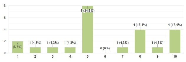 Ich habe NST-Hiker nach ihrem Fitnesslevel vor ihrer NST-Wanderung gefragt und sie dazu gebeten sich zwischen 1 (Keine Fitness vorhanden) und 10 (Ironwoman/-man) einzuordnen.